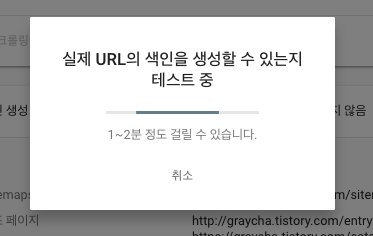 요청 후, 실제 URL의 색인을 생성할 수 있는지 테스트 후, 제출하게 되며 1분 ~ 2분 내외 소요되니 대기합니다.