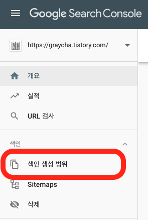 구글 서치 콘솔 내, [색인 생성 범위] 메뉴가 있습니다.