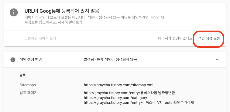 아래 이미지를 참고하여 색인 생성을 요청합니다.