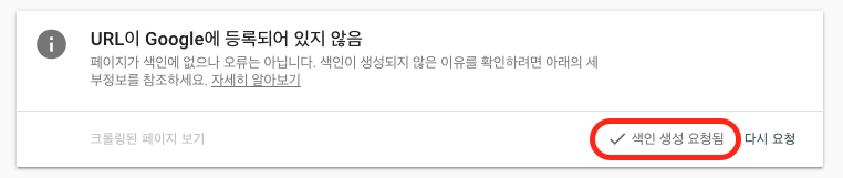 단계 3. 색인 생성이 완료되면, 상세정보 창의 타이틀이 [색인 생성 요청됨]으로 갱신됩니다.