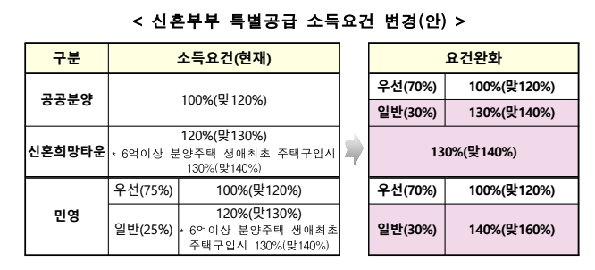 - 일반공급의 소득기준이 130%(맞 140%)로 상향되었습니다.