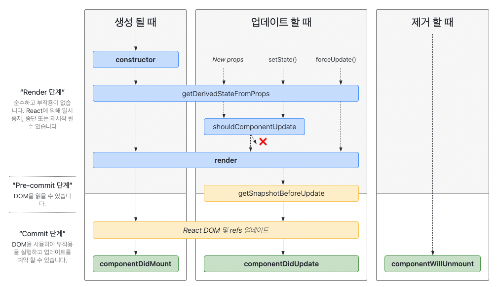 아래 생명주기 도표를 참고하면서, 생명주기 메서드에 대해서 알아보겠습니다.