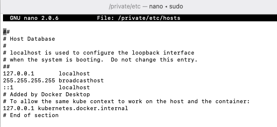 sudo nano /private/etc/hosts