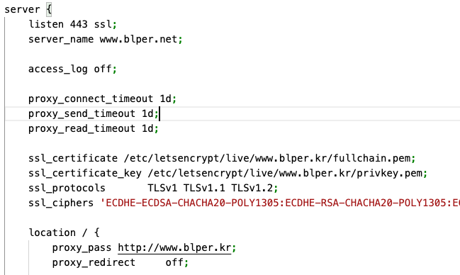 ssl_certificate_key /etc/letsencrypt/live/[도메인]/privkey.pem;
