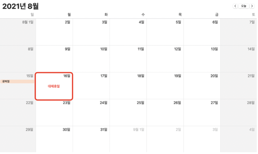 대체공휴일적용 ➠2021.08.16(월)